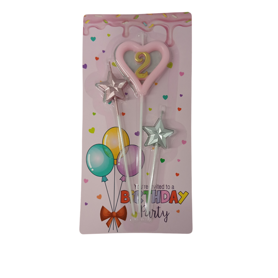 Luminare p/u tort – cifra 2 in inima cu stele, 3 buc (2529) 86-3