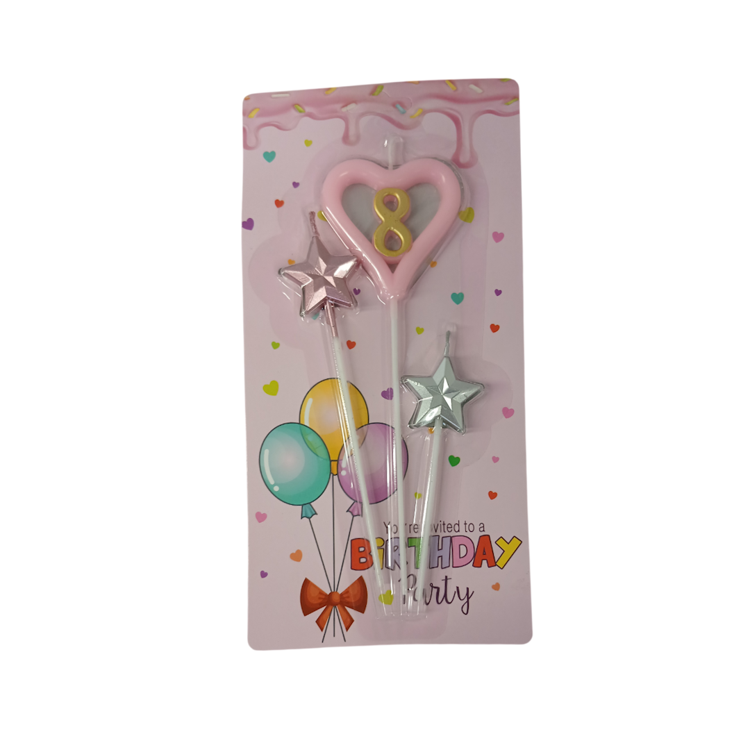 Luminare p/u tort – cifra 8 in inima cu stele, 3 buc (2581) 86-9