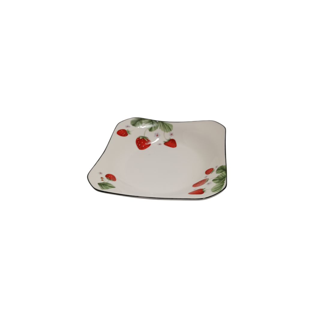 Farfurie ceramica alba, patrata capsuni D16cm (6