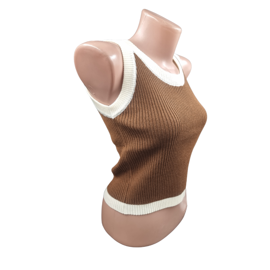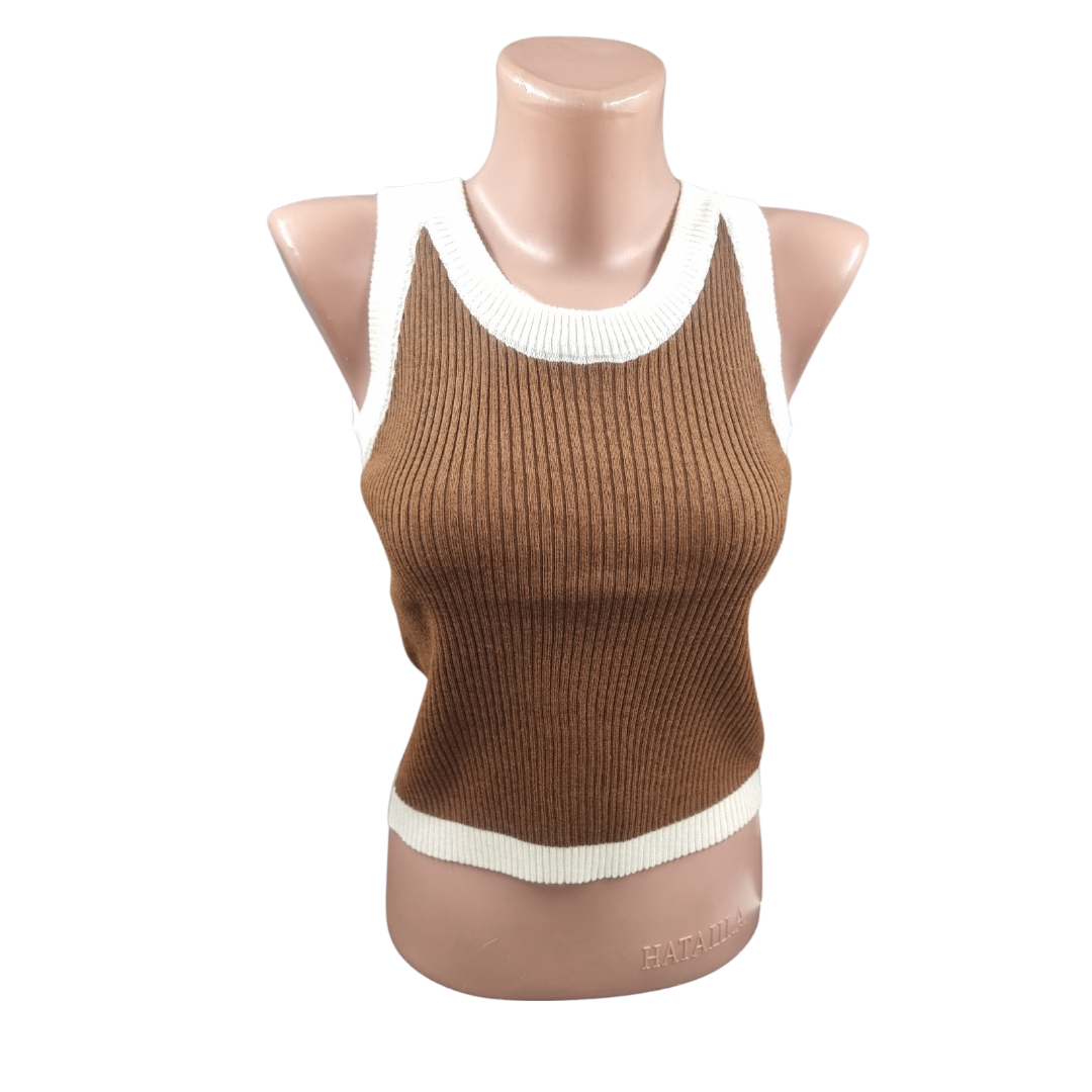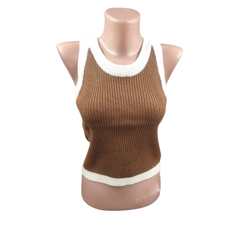 Top pu dame impletit o culoare marginea alba (03