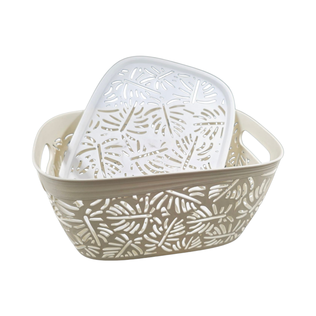 Cos din plastic ovala frunze taiate cu capac 34*25*16cm (2414) 15-6