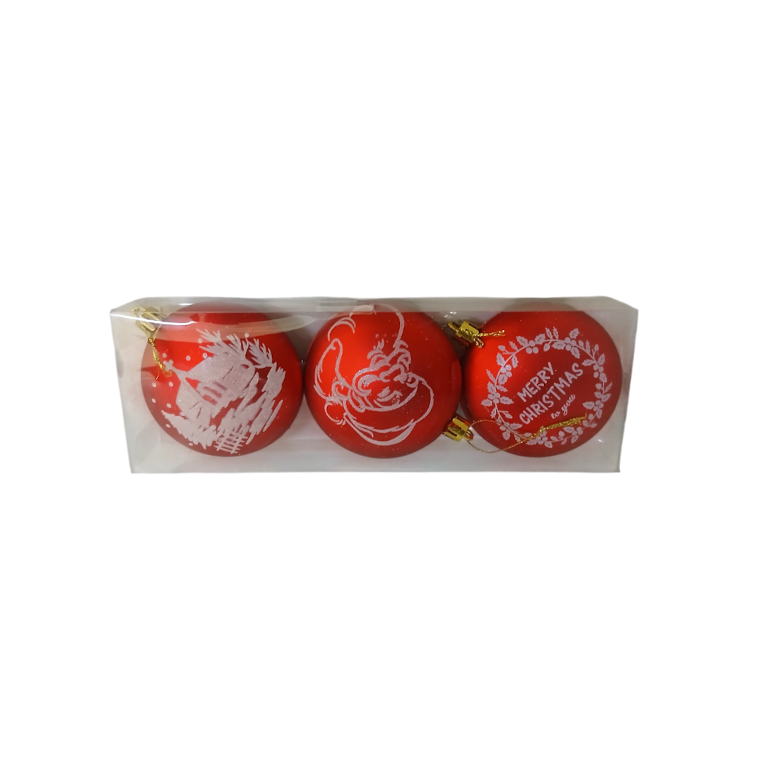 Globuri p/u brad D7,5cm 3buc ovale , inscriptie